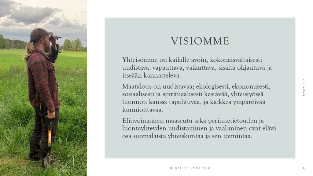 RELIEF-yhteisö käynnistää tammikuussa 2026 päätöksentekopilotin, jossa kehitetään viljelijäporukalla uudistavaa päätöksentekoa vuoden ajan. Liittymällä yhteisöön pysyt kärryillä pilotin etenemistä ja pääset osalliseksi tulevista tapahtumista. Liity linkistä tai laita postia reliefyhteiso@gmail.com. Yhteisön osallisuus on ilmaista vuonna 2026!