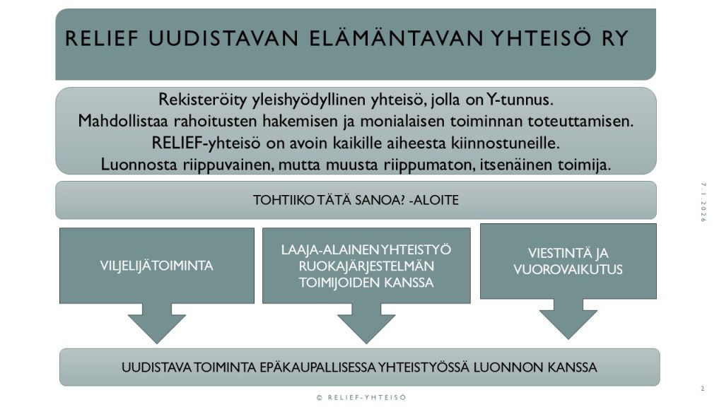 Tohtiiko tätä sanoa? -aloitteen takana on viljelijälähtöinen RELIEF Uudistavan elämäntavan yhteisö ry.
